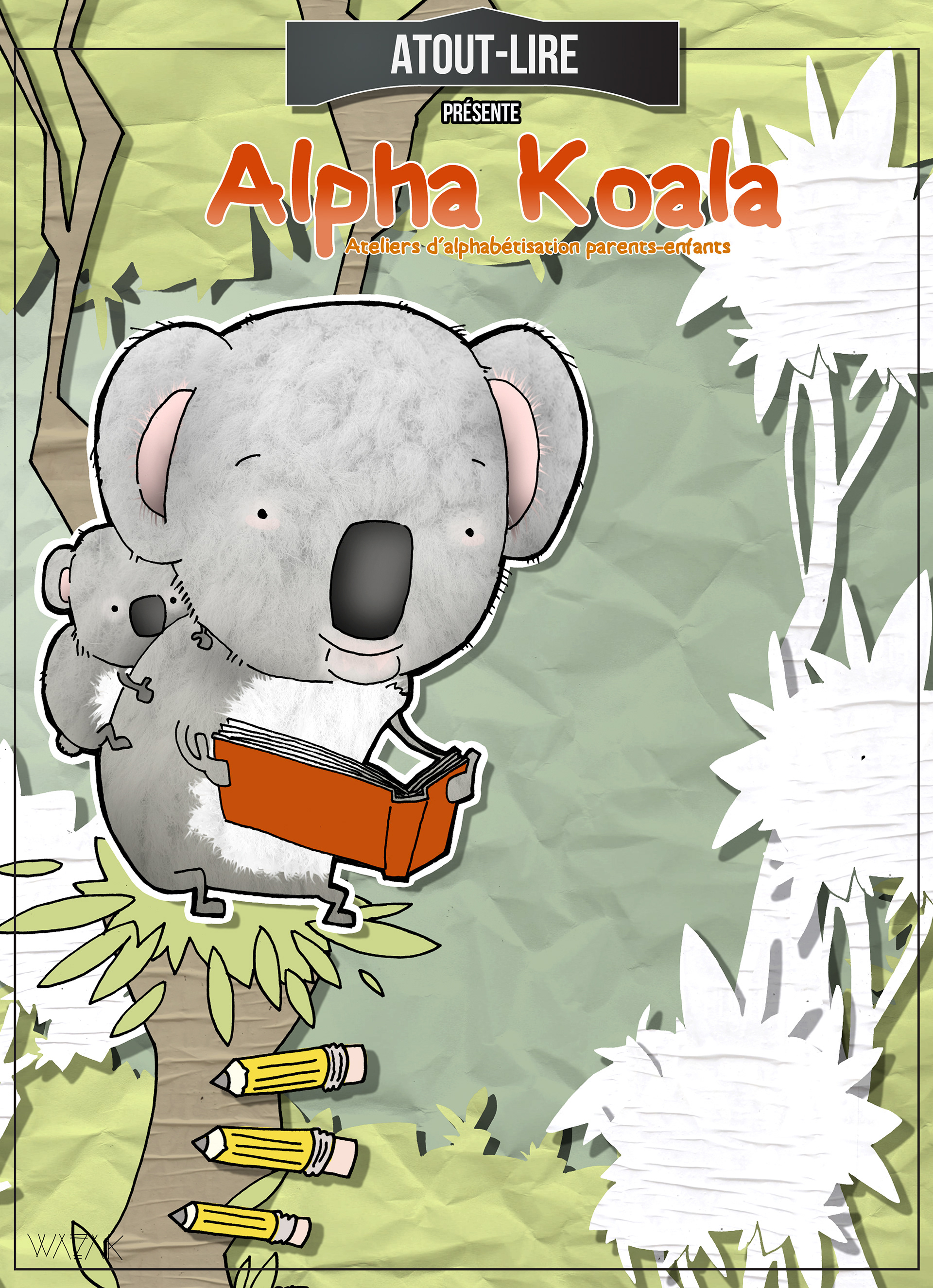 Alpha Koala. Campagne pour des ateliers d'alphabétisation parents-enfants réalisé pour Atout Lire.